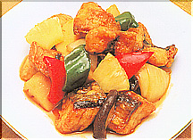 (1) さばは三枚におろし一口大に切り【A】で下味をつける。 (2) (1)に片栗粉をまぶし油で揚げる。 (3) 【B】を一口大に切る。 (4) しょうがはみじん切り、パイナップルは1cm幅に切る。 (5) 中華鍋に油を熱し、しょうがを炒めてから(3)の野菜を炒め【C】を加えて最後にパイナップル、(2)のさばを入れて混ぜる。 (6) 好みでピーマンを半分に切り油通しして(5)を入れて盛ってもよい。 |