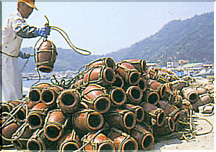 出漁前のタコ壺の点検も欠かせない