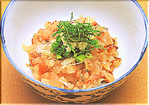 みょうがは千切り、ネギ、にんにく、青じそはみじん切りにする。