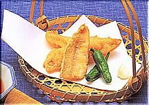 天ぷら粉を氷水でとき、中火で揚げる。