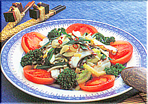 (1) タコは出来るだけ薄く、斜め薄切りにする。 (2) ニラは4cm、白菜は横に細切りにする。もやしはひげ根を取り、にんにくは薄切りにする。 (3) 合わせ調味料を合わせ、赤とうがらしは種を取って小口切りにする。 (4) 中華鍋を熱してサラダ油をなじませ、にんにくを炒めて香を油に移し、白菜、もやし、ニラ、タコの順に加えて炒める。 (5) ほぼ全体に火が通ったら合わせ調味料で調味し、さっと炒めあげる。 (6) 器に盛り、トマト、パセリを添える。 ※タコはスーパーで細かく切ったものを使用してもよい。 |